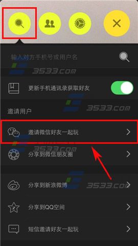 1)首先打开快看软件,在界面点击【菜单】,弹出窗口点击【搜索图标】,再点击【邀请微信好友一起玩】。(如下图)