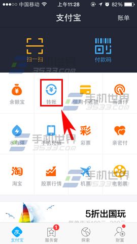 1)首先,打开手机支付宝,在主界面点击【转账】功能,然后找到自己需要聊天的朋友支付宝账号进行转账操作。(如下图所示)