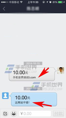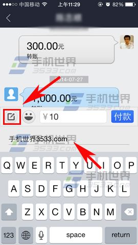 2)在转账界面里输入转账金额,然后点击编辑按钮进行文字编辑,输入你想说得话。这样就是可以进行聊天了,但这种聊天是比较坑爹的哦,必须得达成转账才能发出,所以也堪称最贵聊天软件。(如下图所示)