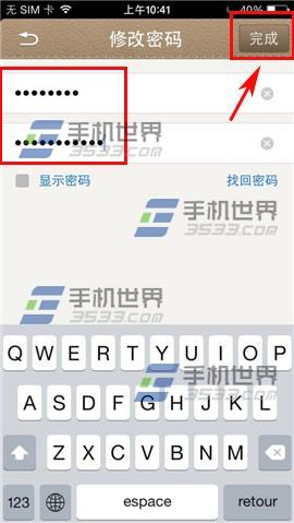 2)在界面首先填写你之前的密码,在填写你要更换的密码,点击【完成】,最后再点击【确定】即可。(如下图)