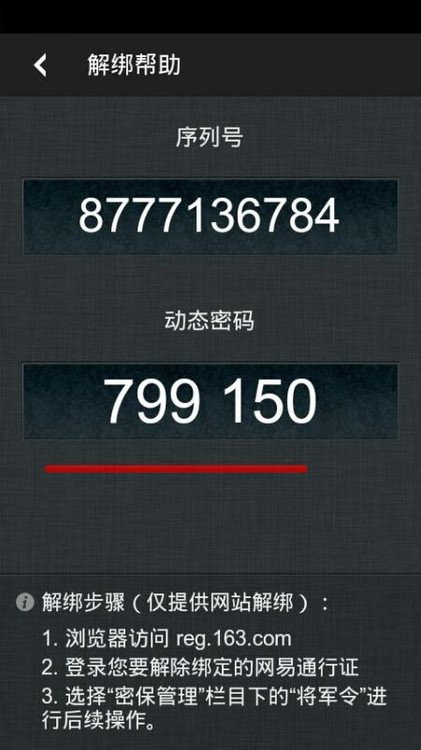 登录reg.163.com,输入手机将军令上的序列号与动态密码解绑: