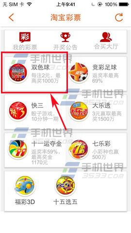 1)首先打开口袋购物,点击【彩票】,在界面选择你要购买彩票的类型点击进入。(如下图)