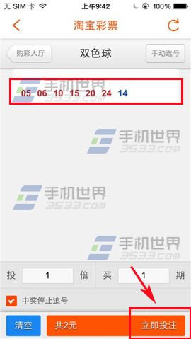 2)可以选择手动选号,或者在屏幕里下拉机选一注(例:下拉机选一注),点击【立即投注】,第一次购买彩票需要先填写领奖人信息哦,是领取大奖的唯一凭证,最后点击【提交】。(如下图)