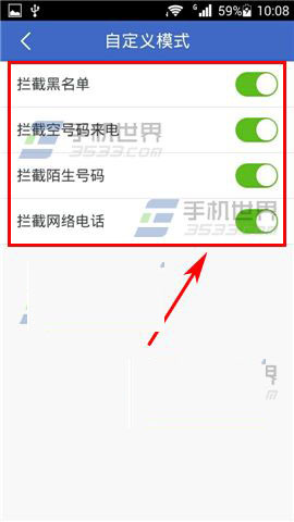 3)选择一个模式,小编此处以【自定义模式】为例,点击进去即可选择自己需要拦截的电话类型了。(如下图)