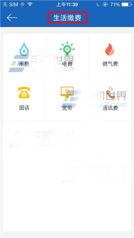 2)进入界面便可以查看生活缴费包含可以缴费类别。(如下图)