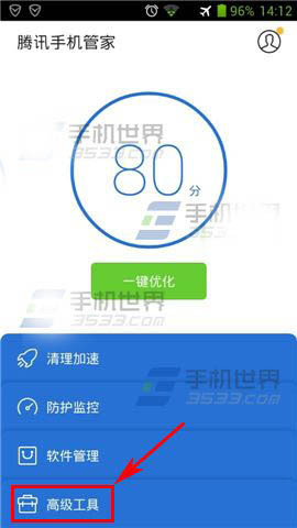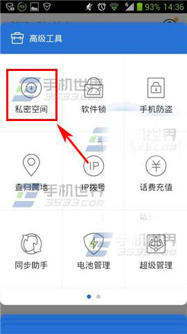 1)打开腾讯手机管家,点击下方【高级工具】,然后选择【私密空间】。(如下图)