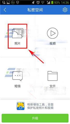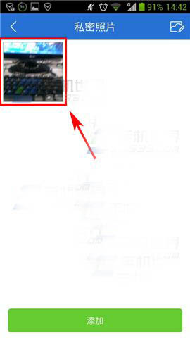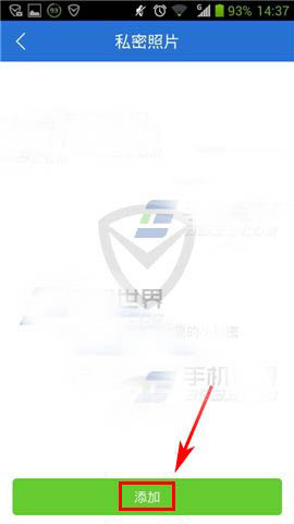 3)这里可以对【照片】【视频】【短信】【文件】进行加密,小编此处以【照片】为例,选择【照片】,然后点击下方【添加】。(如下图)