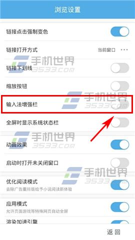 2)选择【浏览设置】,然后把【输入法增强栏】选项关闭即可。(如下图)