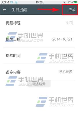 2)在界面填写提醒标题、日期、时间和备忘内容,点击【完成】,返回界面就能看到添加的提醒了。(如下图)