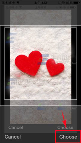 3)选择你要插入的图片点击一下,进入对照片编辑大小或移动位置,点击【Choose】。(如下图)