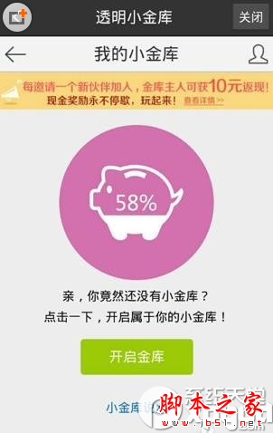 1.在进入“小金库”首页后,点击“开启金库”,就可以创建属于自己的个性十足的小金库