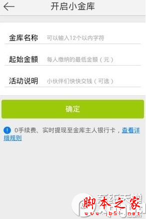 2.首先,输入金库名称、最低转账金额和活动说明三项内容,即可创建成功;