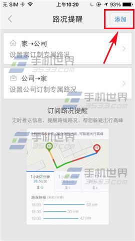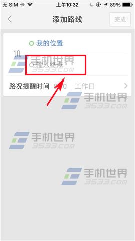 2)在界面可以选择定制家到公司的或者公司到家的路况再或者自行添加(例:添加),进入界面输入终点站。(如下图)
