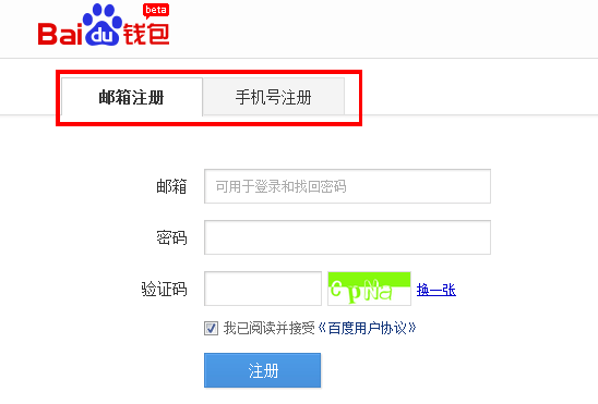 用户可以使用邮箱或者手机号进行注册百度钱包账号;