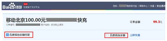 勾选“百度钱包余额”,输入钱包账户支付密码即可完成付款。
