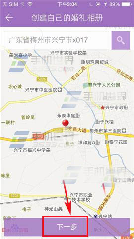 2)进入界面会自动定位或者你自己输入地址,点击【下一步】,输入你要创建的相册名称,点击【创建】。(如下图)