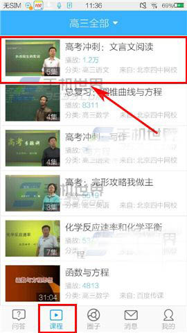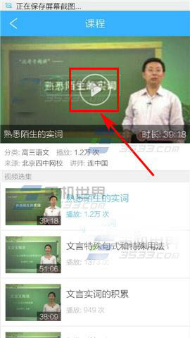 1)首先打开【作业帮】,进入首页后点击下方的【课程】后选择自己想要观看的视频点击一下,然后点击视频中间的按键。(如下图)