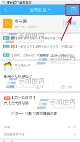 1)首先打开【作业帮】,进入界面后点击下方中间的【圈子】再点击上方的【年级圈】,在点击右上角按键。(如下图)