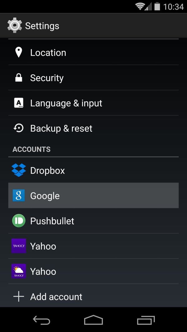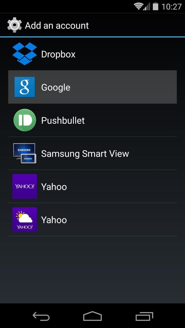 接下来在你的设备上增加好友的谷歌帐号。在Android设备上你可以访问手机上的设置,点击增加帐号,从清单中选择Google。