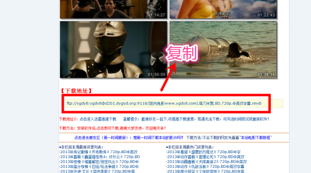 4.从网络上任意找到一个迅雷的链接地址,复制,如果我们想要下载电影
