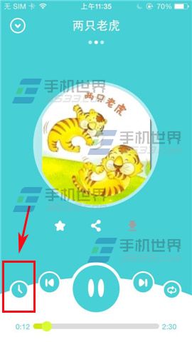 2)进入界面选择你要听的歌曲点击一下,然后在下方点击【∧】,在界面左边点击【时钟图像】。(如下图)