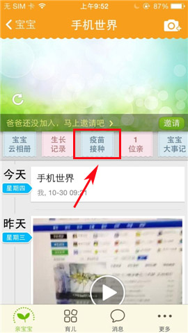 亲宝宝如何记录疫苗接种日期?从小宝宝一出生开始就要每个几个月就要打一次疫苗,很多时候妈妈会经常忘记时间给宝宝准时去打疫苗了,其实只要妈妈下载了亲宝宝软件不仅可以记录宝宝的成长快乐还能帮你记录宝宝的疫苗接种日期哦,而且还会告诉你什么时候打什么疫苗。今天小编就教大家亲宝宝如何记录疫苗接种日期。