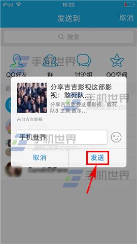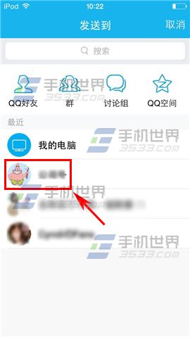 2)选择一个分享方式,比如【QQ】,选择你要分享的QQ好友或者群组。(如下图)