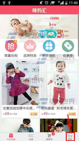 1)首先先打开【辣妈汇】,登录进去后点击【我的】。(如下图)