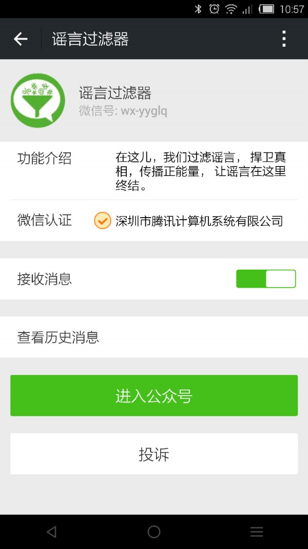 微信公众平台在登陆之后增加了一个名为“官方辟谣账号谣言过滤器”的二维码。此二维码为“谣言过滤器”的微信公号,微信官方通过此号对朋友圈里的谣言进行澄清。翻阅历史记录发现,此公号于10月17日开始运营,截至目前已经发布10多条辟谣信息,内容涵盖各式各样的谣言。