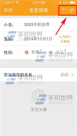 2)在界面输入宝宝的小名、生日、性别和关系,还可以上传头像,点击【下一步】,再点击【完成】。(如下图)