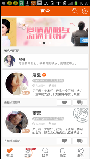 6、接着,就进入百合网的主页面了,可以看到相关的信息了。