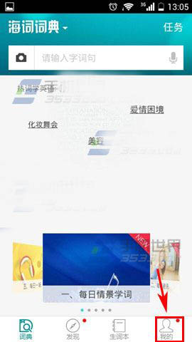 1)首先先打开【海词词典】,然后点击右下角【我的】。(如下图)