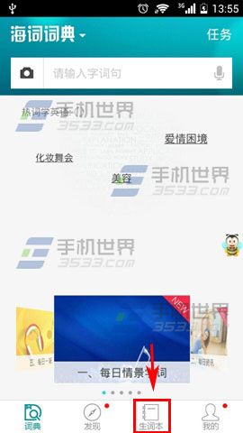 1)首先先打开【海词词典】,进去之后点击最下方的【生词本】。(如下图)