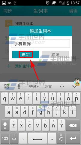2)然后点击【添加生词本】,最后把自己要记的生词写进去,写完后点击【确定】就可以了。(如下图)