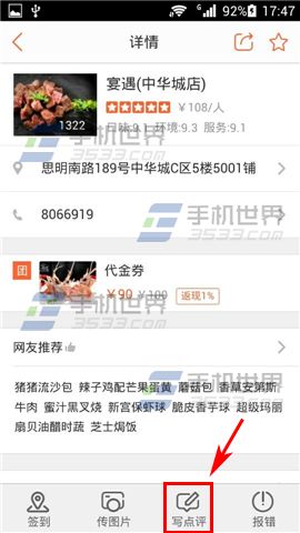 1)打开大众点评,进入要点评的店铺,点击下方的【写点评】。(如下图)