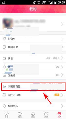 2)接着点击【收藏的商品】,然后点击一下要取消的商品。(如下图)