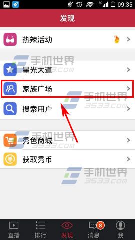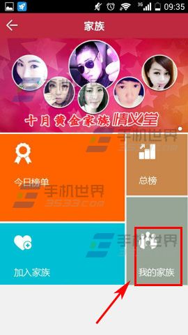 2)接着点击【家族广场】,然后点击【我的家族】。(如下图)