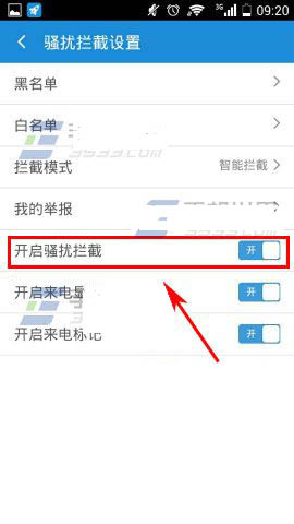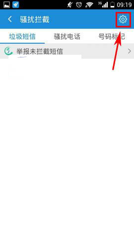 2)然后点击右上角的【齿轮符号】,最后把骚扰拦截打开就可以了。(如下图)