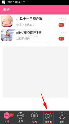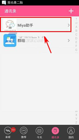 1)首先先打开【米呀】,进去之后点击【通讯录】。(如下图)