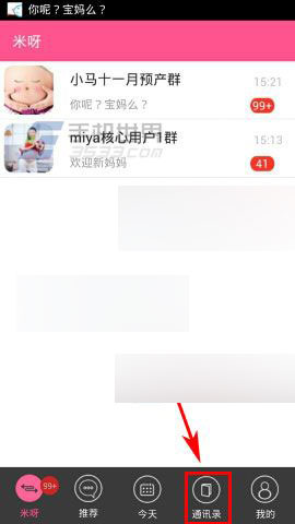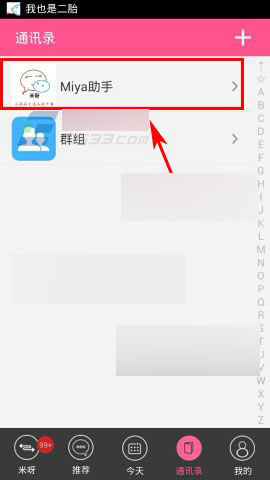 1)首先先打开【米呀】,进去之后点击【通讯录】。(如下图)