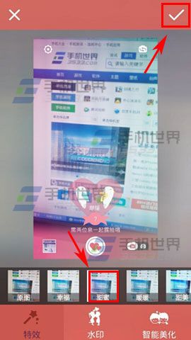 2)拍完相片后点击【特效】,最后选择自己喜欢的特效点击【√】就可以了。(如下图)
