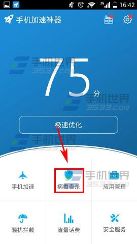1)首先先打开【手机加速神器】,进去之后点击【病毒查杀】。(如下图)