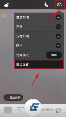 1)打开相机360软件,进入相机360后点击右上角设置并点击高级设置。(如下图所示)