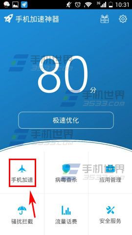 1)首先先打开【手机加速神器】,进去之后点击【手机加速】。(如下图)
