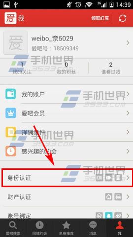 2)然后点击【身份认证】,接着点击【手机号码】。(如下图)