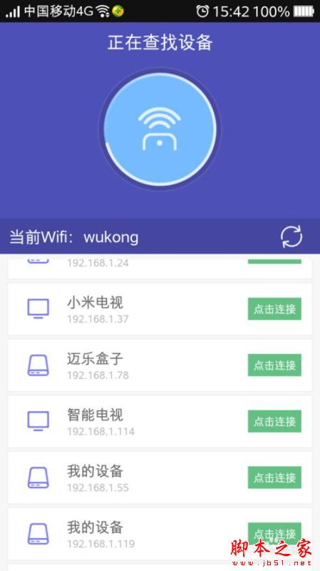 如果搜索到相关设备,就会看到下面的界面(支持连接多个设备),点击对应的设备名称即可使用悟空遥控: