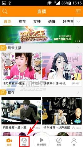 1)打开手机YY,点击进入【神曲】频道。(如下图)