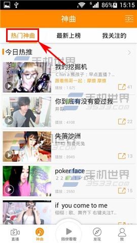 2)在这里,可以看到【热门神曲】和【最新上榜】的神曲。(如下图)