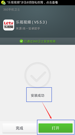 4、安装成功后,会显示“安装成功”点击右下角“打开”进入体验,如下图所示:
