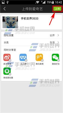 以上就是爱奇艺视频朋友圈上传视频的图文教程,以后可以分享自己拍摄的视频影音啦,谢谢阅读,希望能帮到大家,请继续关注脚本之家,我们会努力分享更多优秀的文章。